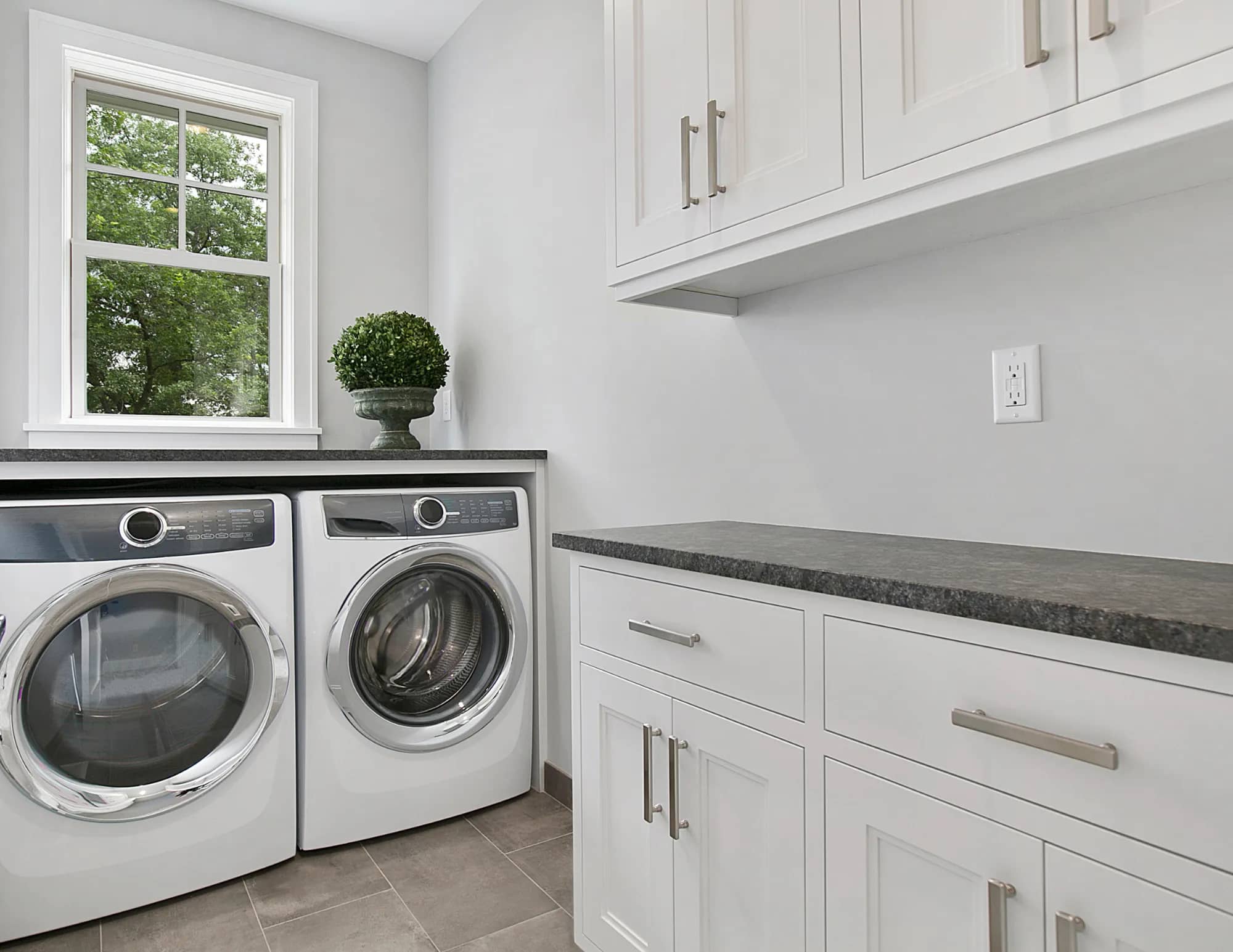 We can even stack your machines, tuck in a little sink, and still leave room for a storage cabinet. It’s like laundry room Tetris, and we’re very good at it.