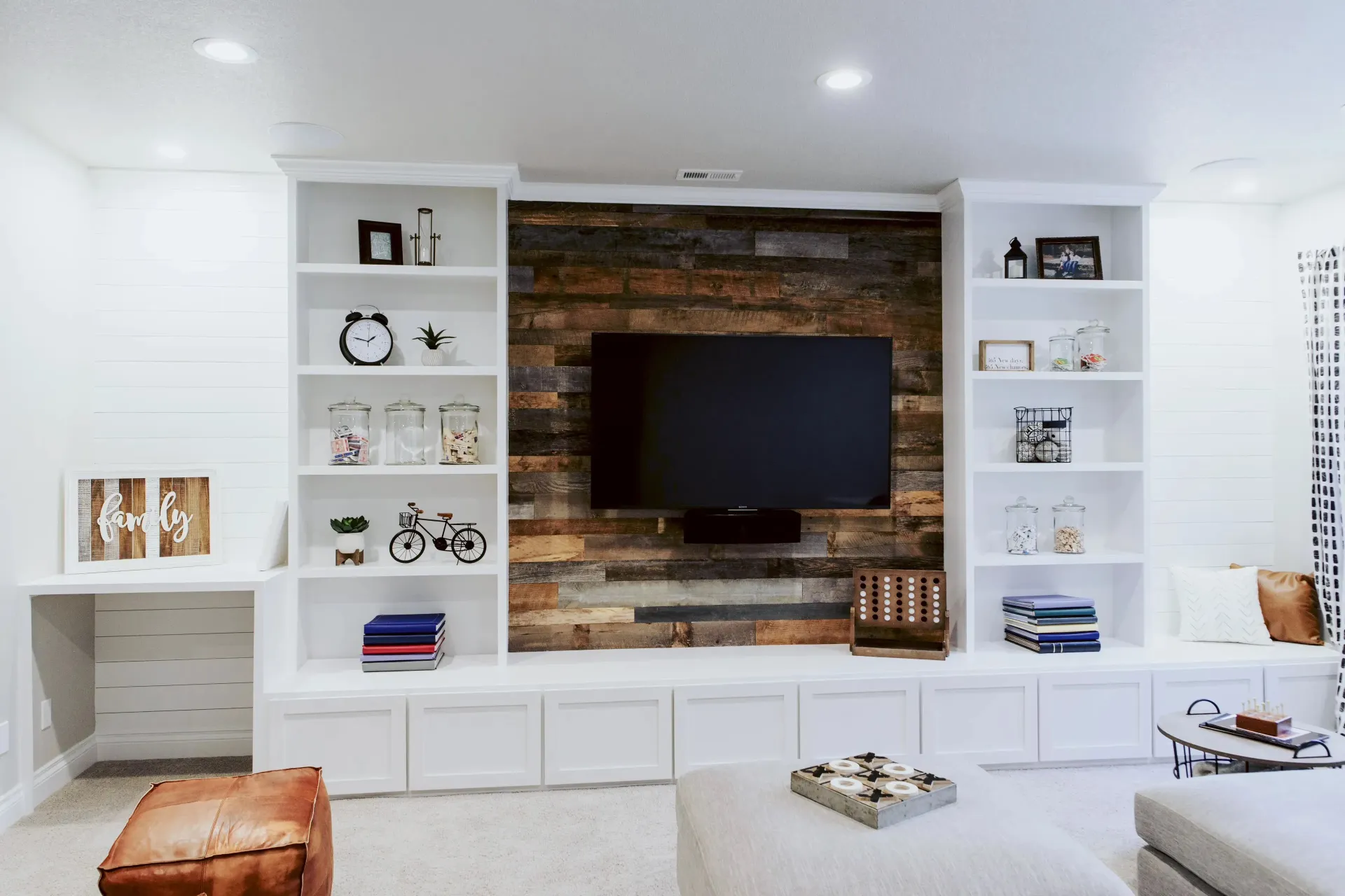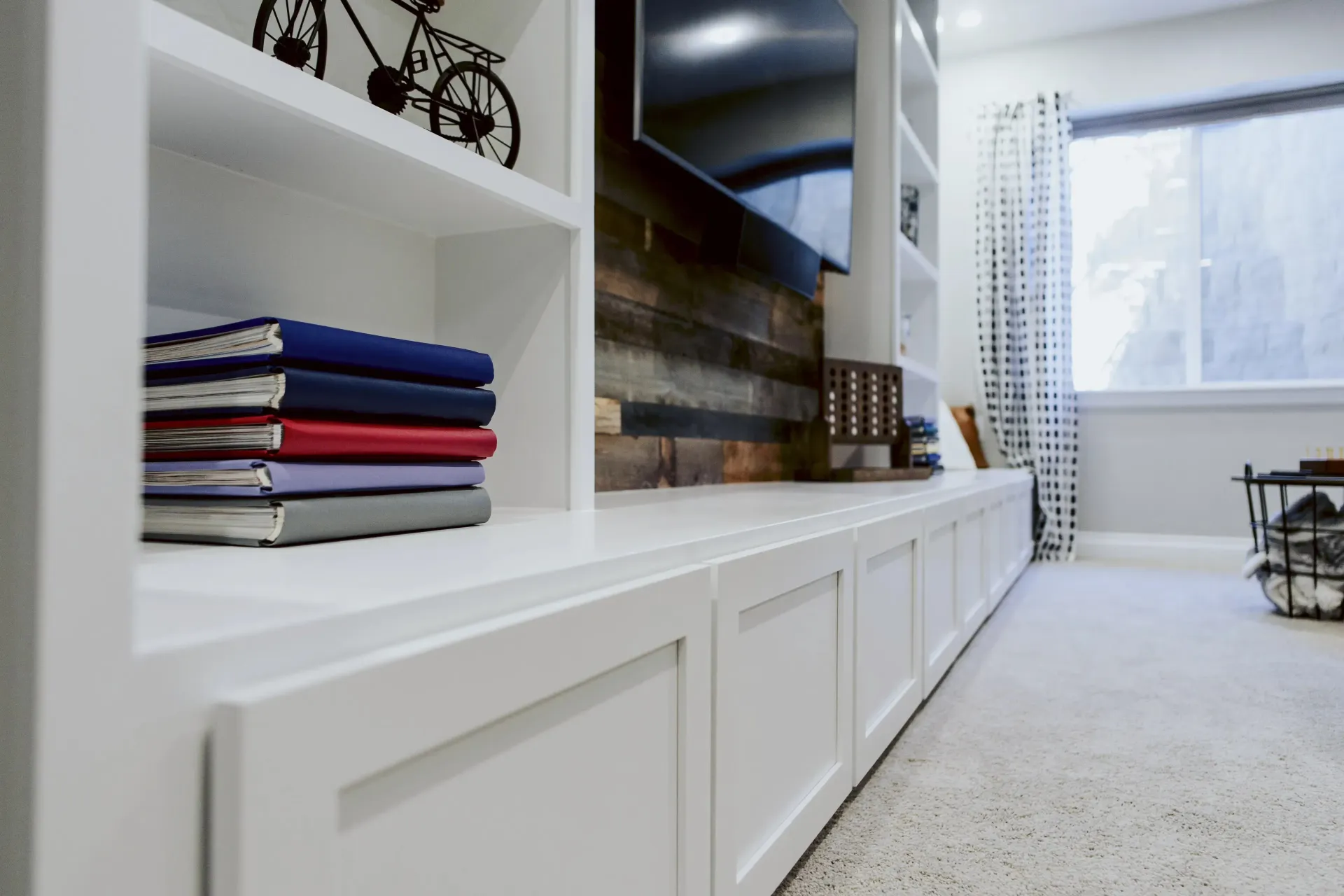 We wanted to take an ordinary room and make it exceptional. Collaborating closely with Rich and Molly, our HOMEfix team remodeled their basement into an modern entertainment room. With a built in shelving, wide open space, and a clean minimal look, their basement is now the ultimate spot for family fun.